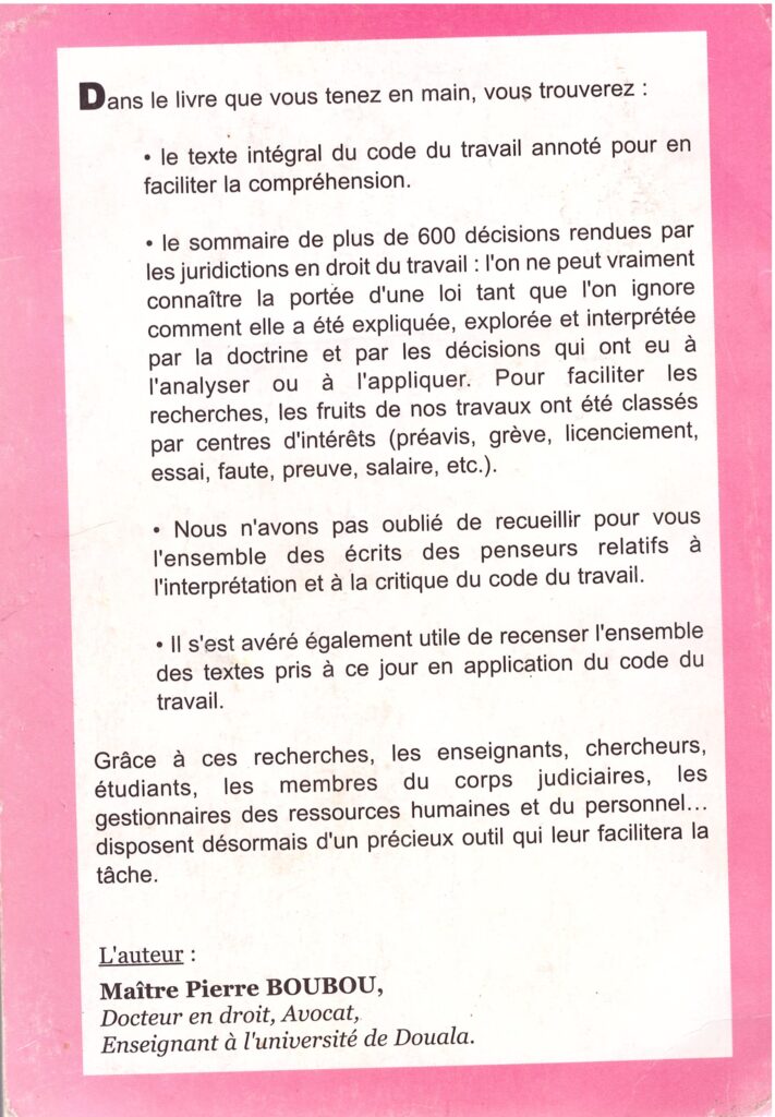4) Le code du travail avec références jurisprudentielles et doctrinales. Editions Avenir 2003.