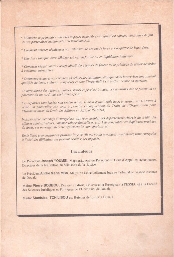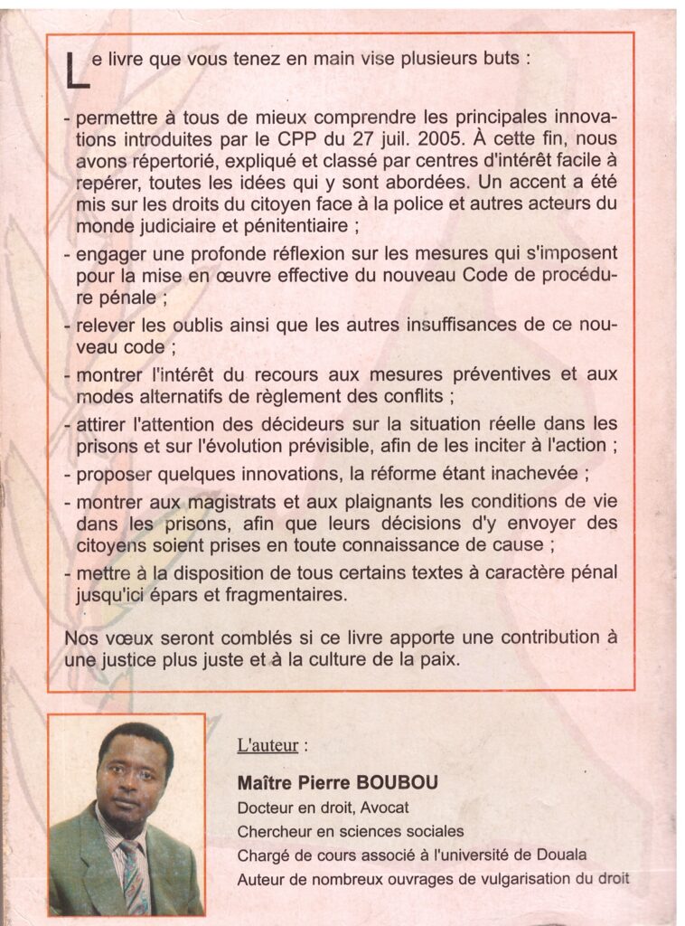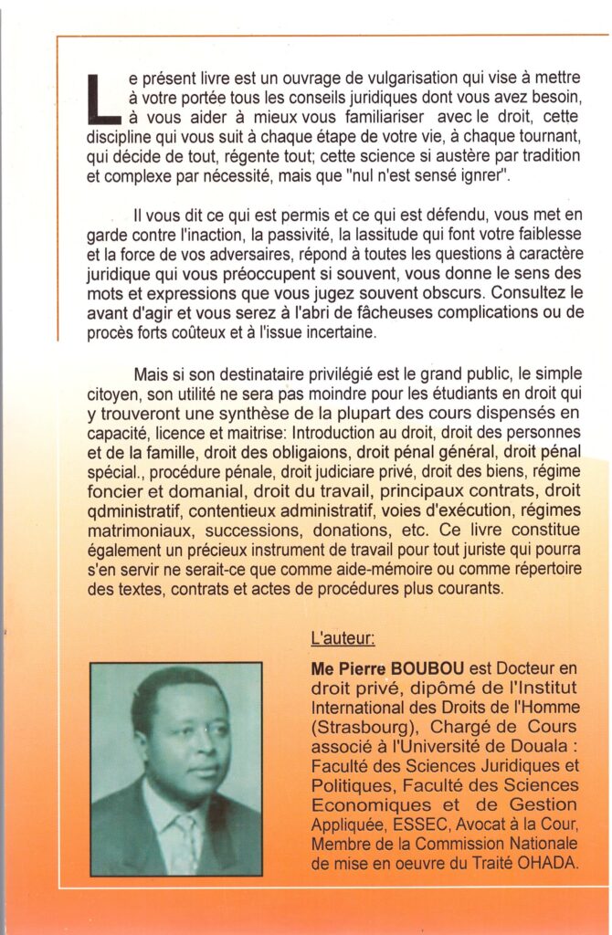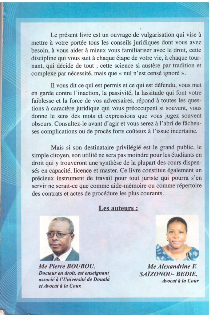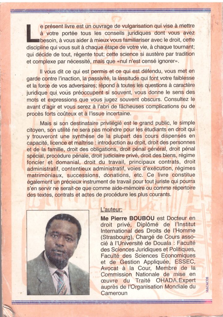 2) Le droit à la portée de tous. Tome II. Editions SOPECAM. Yaoundé. Juin 1991, réédité en 2001 avec le concours de l’Ambassade de France au Cameroun.